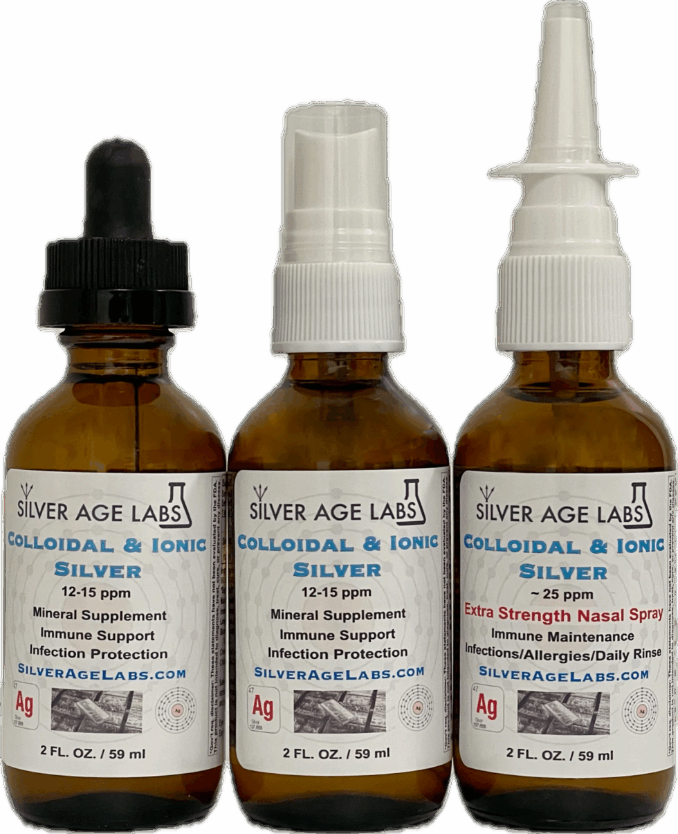 2 oz. silver dropper, 2 oz. silver fine mist spray, and 2 oz. extra strength nasal spray.